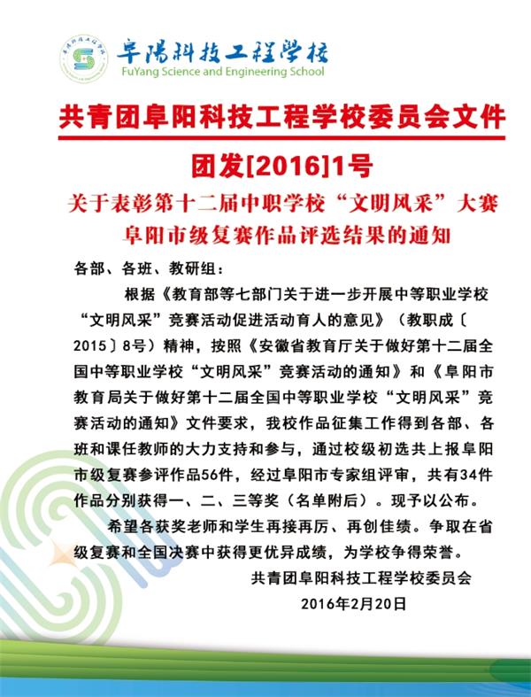 我校在阜阳市第十二届中职学校“文明风采大赛”中取得优异成绩