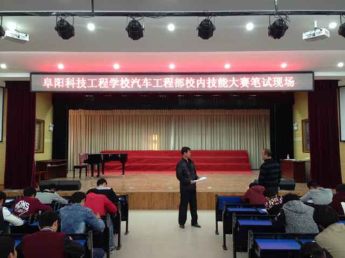 为迎接阜阳市中职学校技能大赛,2015年11月3日下午,阜阳科技工程学校汽车工程部在本校实训楼多功能报告厅和阶梯教室,分别举行了汽修、数控两个专业的理论笔试大赛。