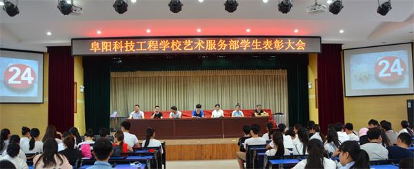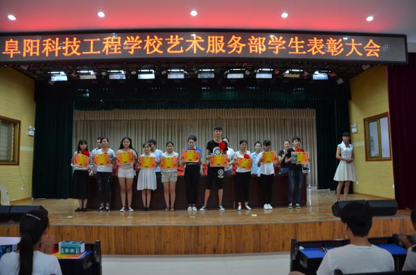 6月22日下午,阜阳科技工程学校艺术服务部在校报告厅举行2015-2016学年“技能标兵”颁奖大会。来自淘宝美工、形象设计、界首彩陶等专业的36名学生受到表彰。
